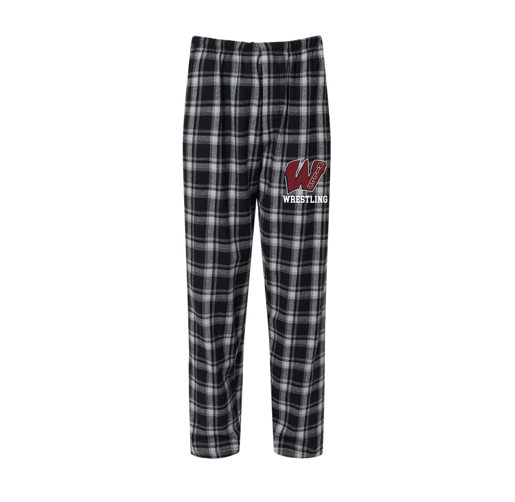 Men's Boxercraft flannel pant with Wayne Hills Logo on left front leg.