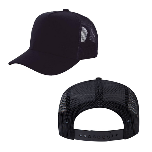 Black/Black 5 Panel Mid Profile Mesh Back Trucker Hat