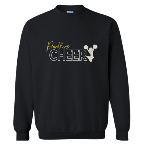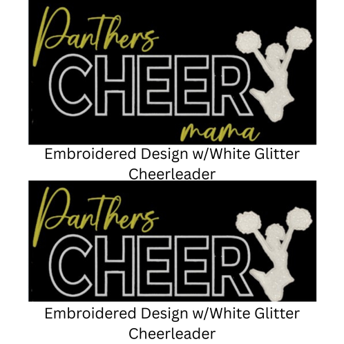 EMBROIDERED Panthers CHEER with White Glitter Cheerleader Crewneck/Hoodie - ADULT